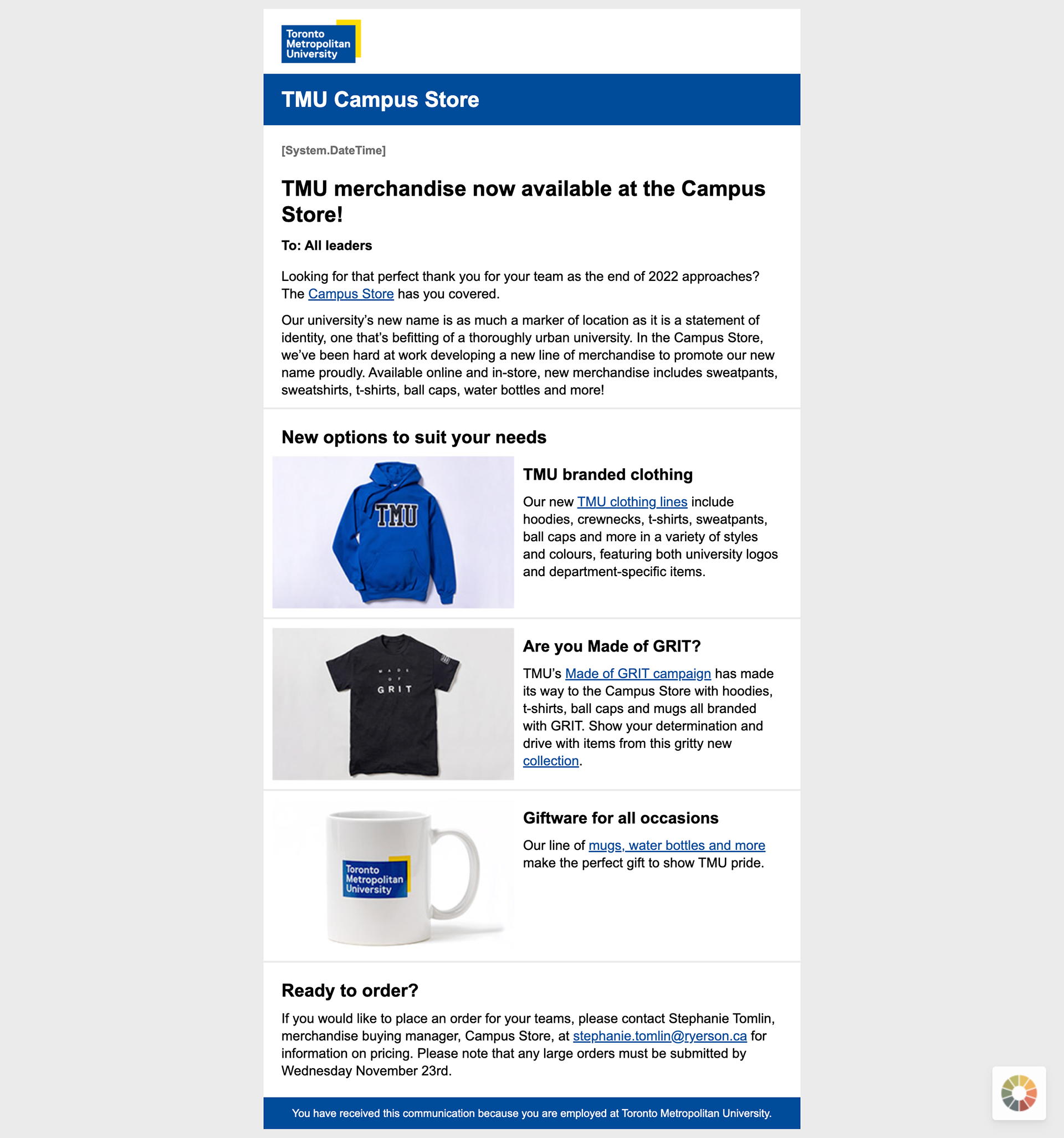 These are examples of a few of the emails I created and sent out to students, staff and faculty.